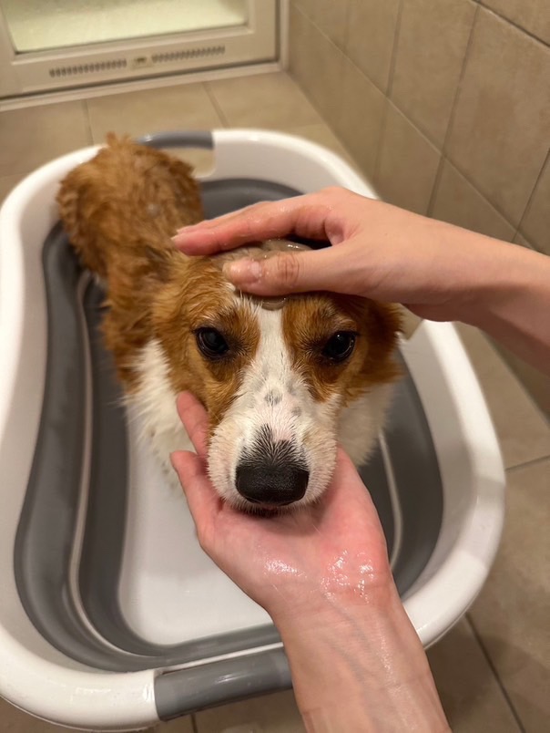 ドッグランで走り回り、プールで滑ってびしょびしょに…