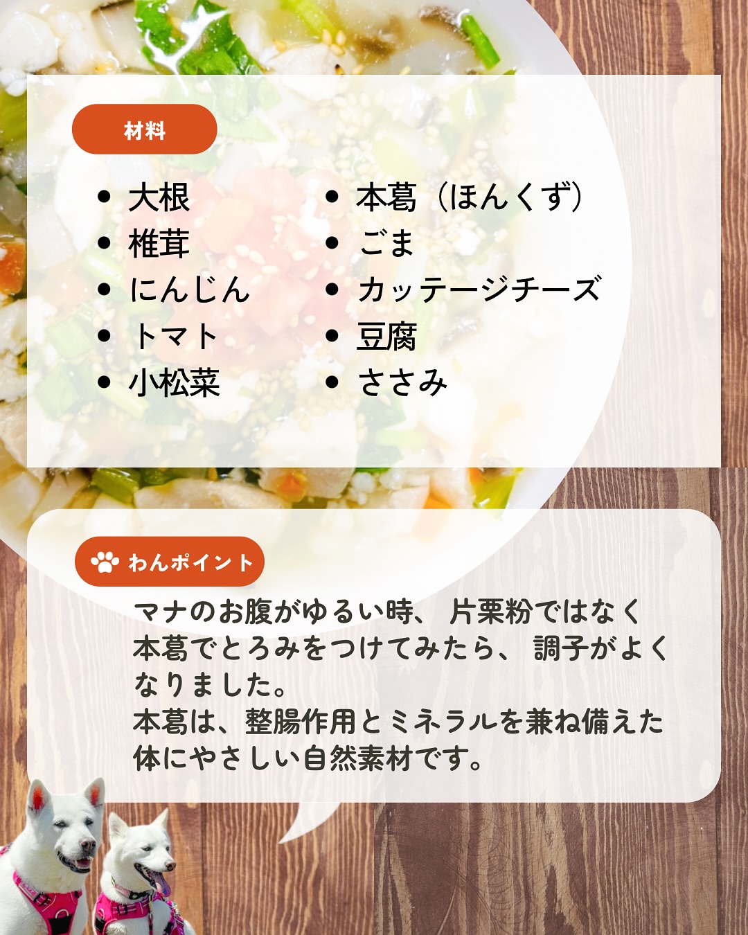 腸から整える🌿完全無添加の手作りごはん🐶愛犬マナをお迎え当初皮膚はボロボロ。 痒みで眠れず、1日中かきむしっていたその姿を今も忘れられません。 マナのアレルギーが治りますように… そんな願いを込めて始めた手作りご飯で、マナはアレルギーを完治することができました。 同じような悩みを抱える方の 希望になりますように。 ※栄養士が作る、安心の完全無添加レシピですが、あくまで私個人の経験に基づくものであり、医療的アドバイスではありません。