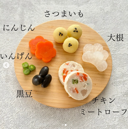 さつまいもマッシュを肉球型にしたよ🐾 簡単だけどおせちらしくなりました😊