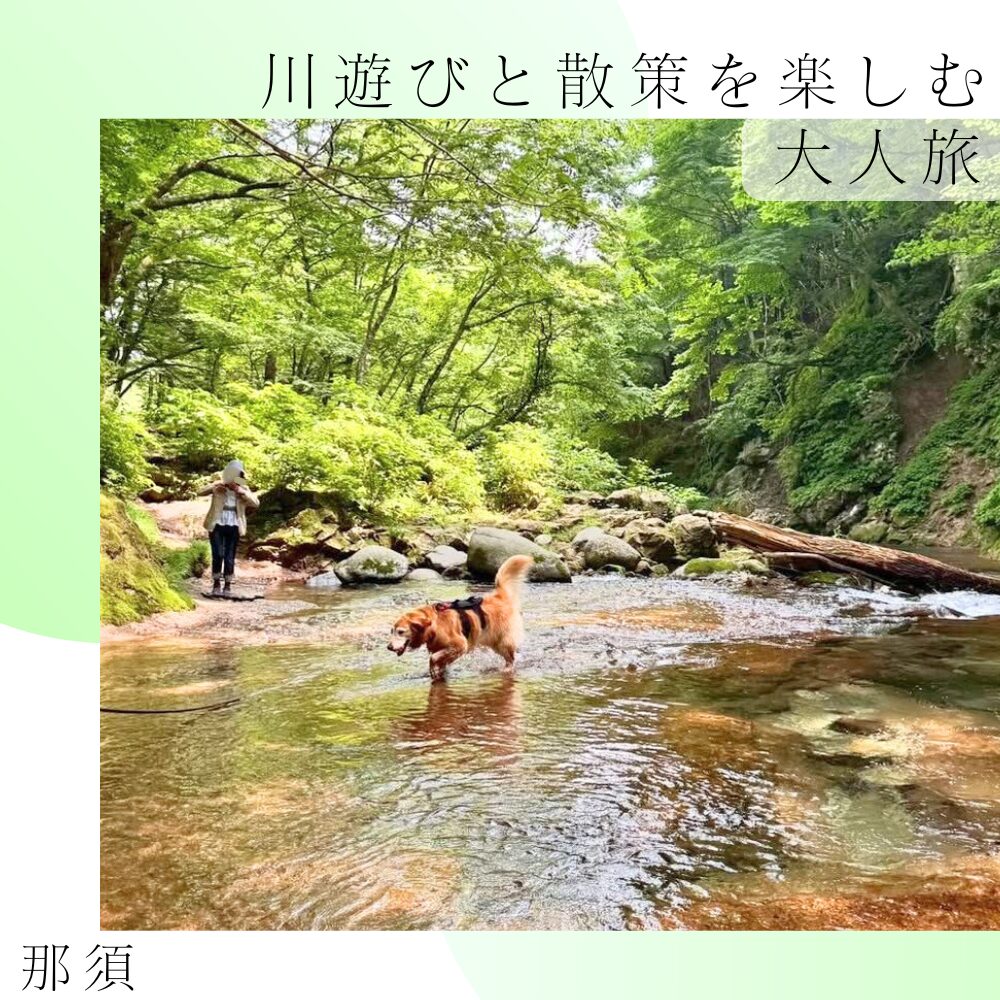 やわらかな新緑を感じられるようになった那須。小鳥のさえずりに包まれながら、清流と森を愛犬とお散歩。川では愛犬が水遊びできる時間も。旅のご飯も、地域の食材を堪能できる、ワンちゃん室内OKなレストラン。