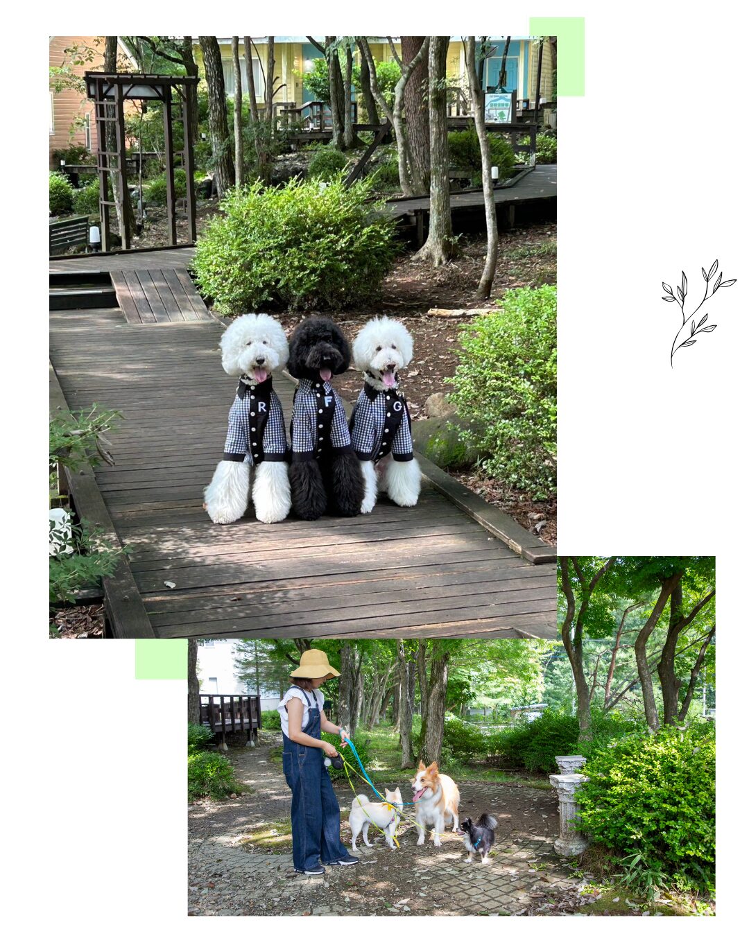 翌朝は、ウッドデッキや宿周辺を愛犬とゆっくりお散歩。 春の新緑に包まれた澄んだ空気の中、わんちゃんも自然と足取りが軽くなります。 1日の始まりを、静かで心地よい時間からスタートできます。