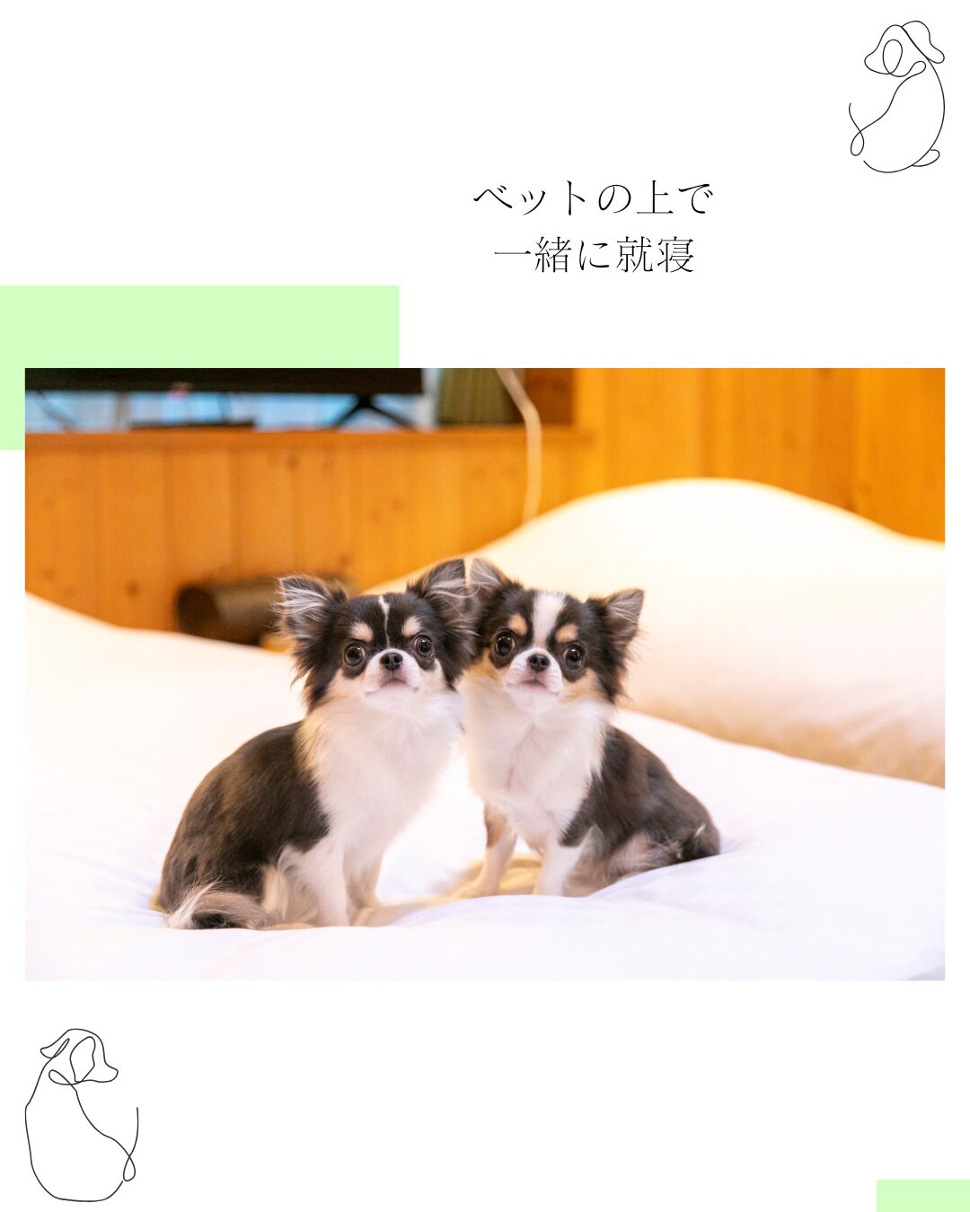 ワンちゃんもベッドの上で一緒に眠れるので、愛犬にとっても安心できる、やさしい夜時間が流れます。