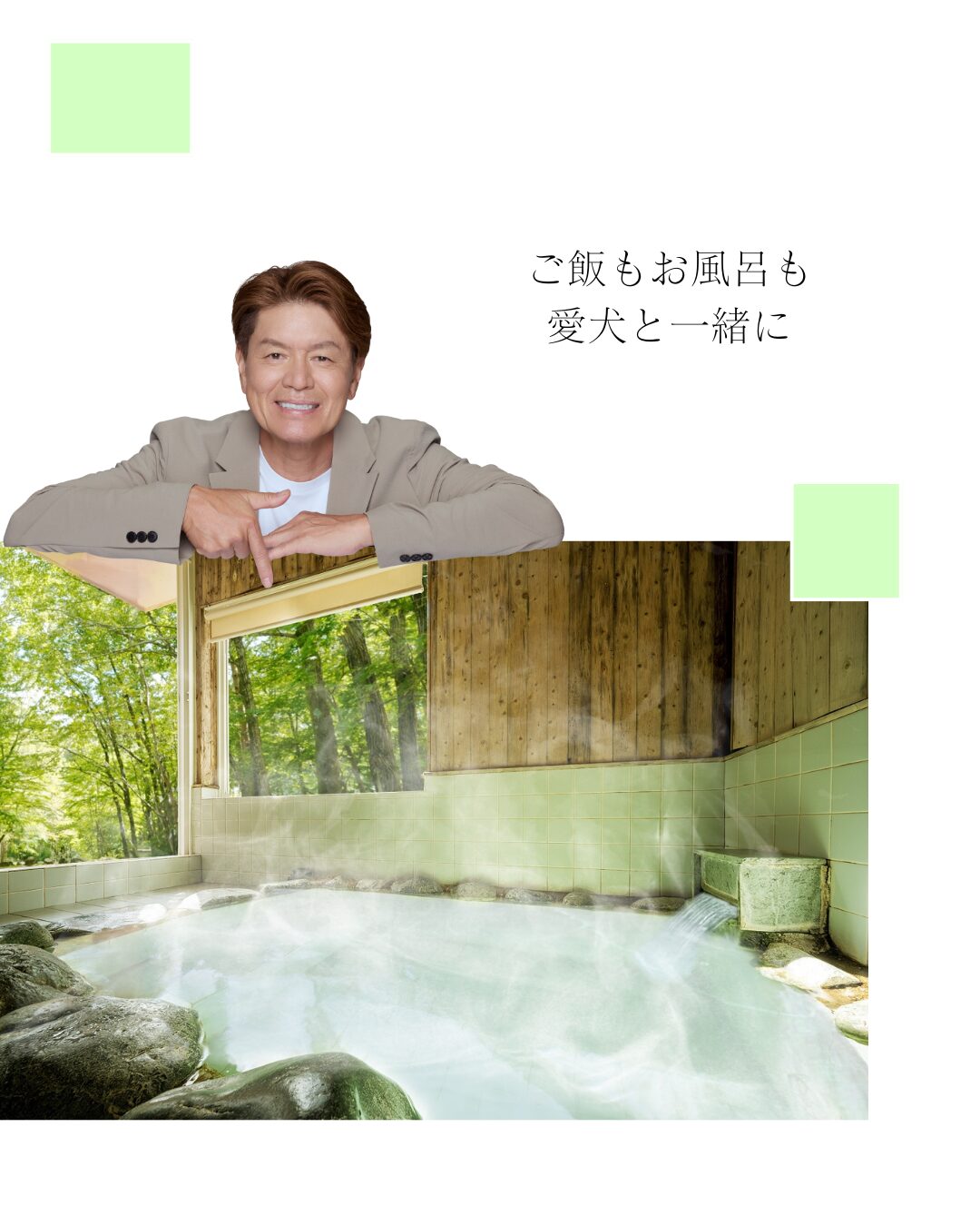 チェックイン後はお部屋で少しのんびり過ごし、その後は森に囲まれた温泉でワンちゃんと一緒に旅の疲れをゆっくり癒す時間。