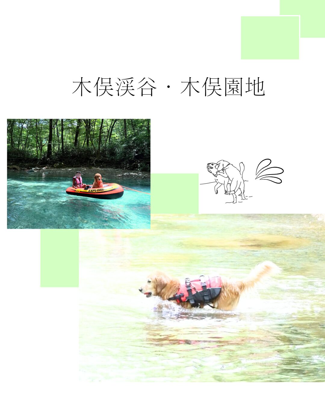 木俣渓谷・木俣園地では、清流と新緑に囲まれた、愛犬と散歩を楽しめる自然スポット。 浅瀬の川では、わんちゃんと水遊びが楽しめます。 季節によって表情がが変わるため、春や秋の散歩も楽しめます。