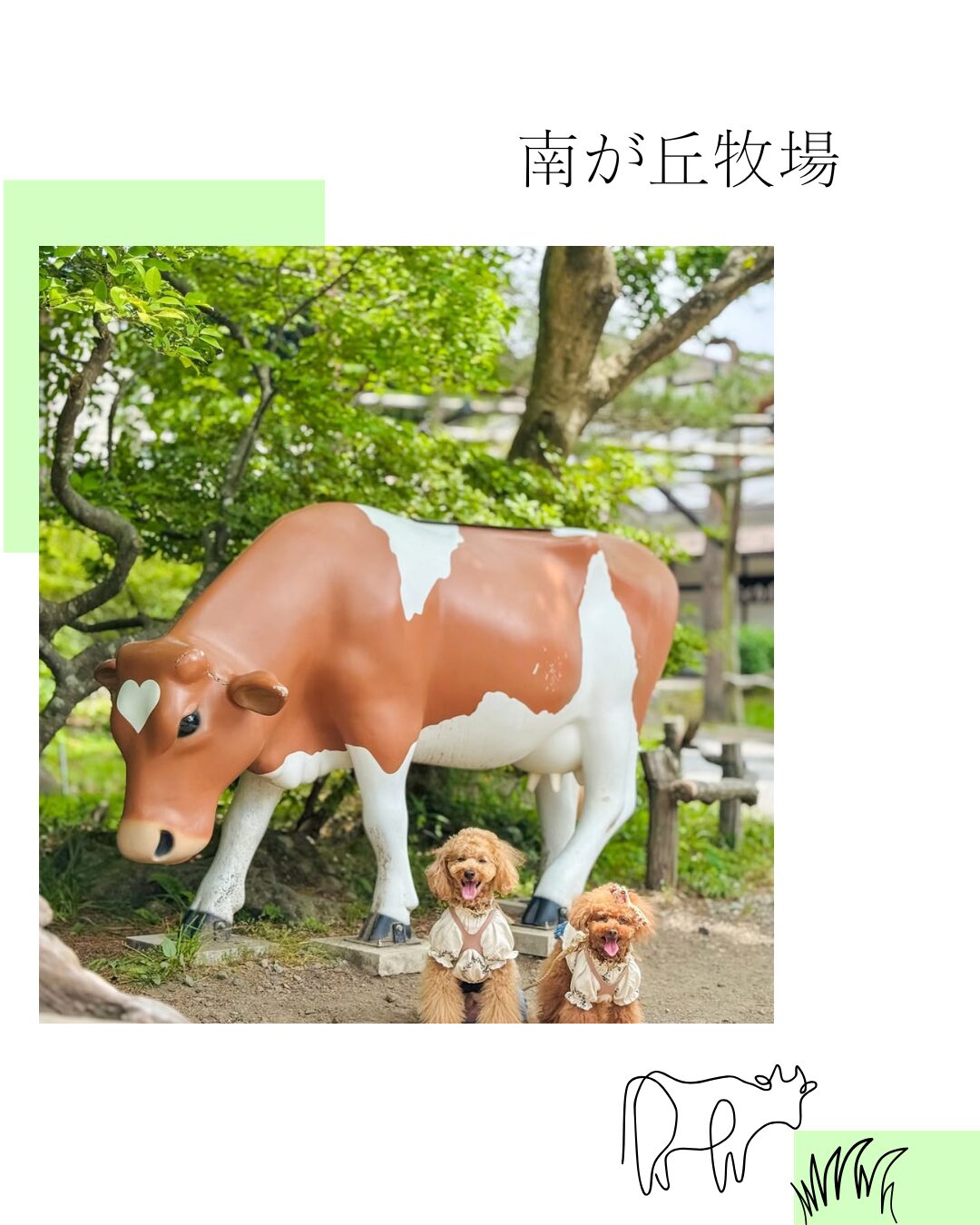 チェックアウト後は、愛犬と一緒に楽しめる南ヶ丘牧場へ。 入場無料のペット可施設で、春は新緑や草花を感じながら、愛犬とのんびり散策できます。 他の動物たちの気配にわんちゃんも興味津々で、那須らしい自然を満喫できるスポットです