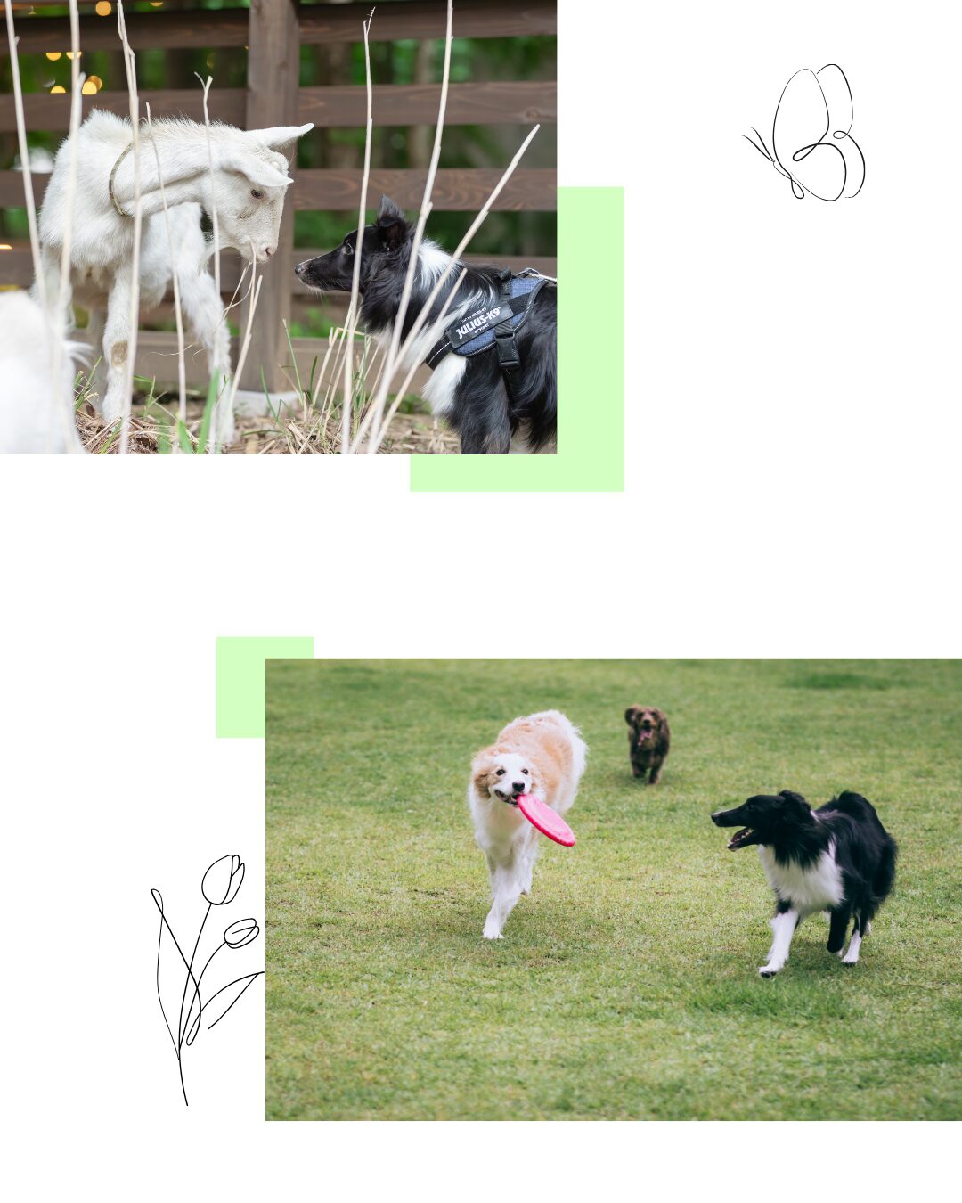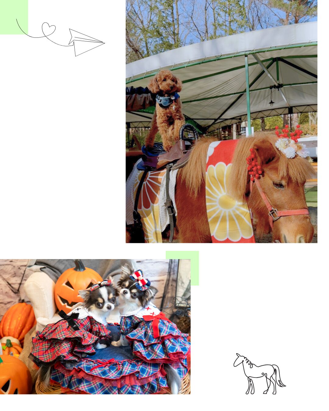 朝食のあとは、宿内にあるドッグパークへ。 広々としたドッグランで愛犬と自由に過ごせるほか、ヤギやポニーに出会えたり、乗馬体験ができるエリアもあります。 フォトスポットも用意されており、愛犬との記念撮影を楽しめます。